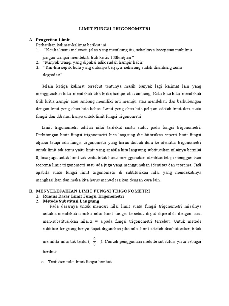 Limit Fungsi Trigonometri Makalah Rumus Teorema Contoh Soal