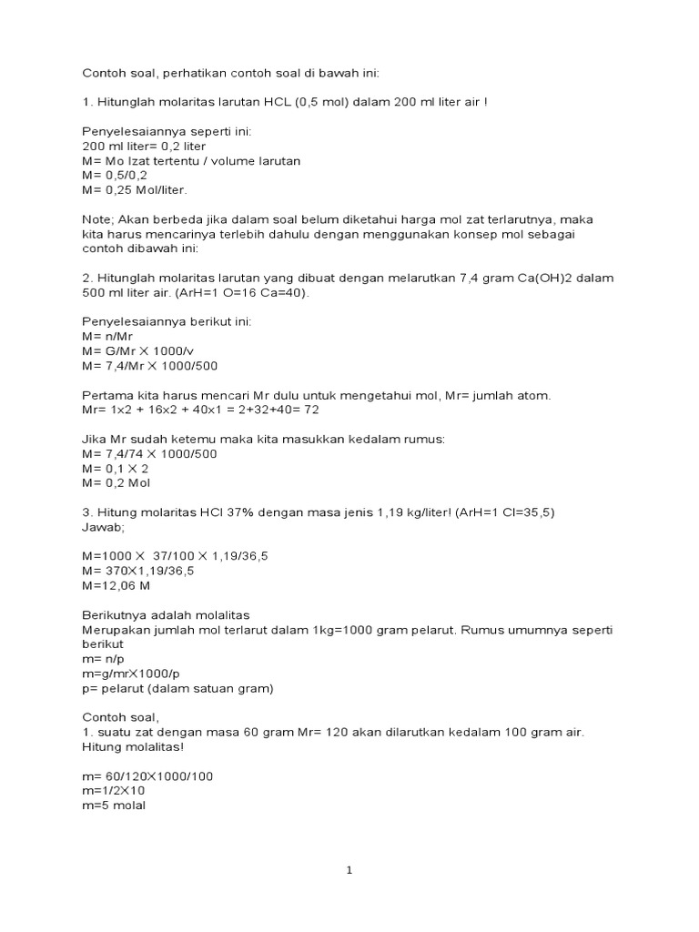 Pengertian Rumus Dan Contoh Soal Mol Molalitas Molaritas Dan