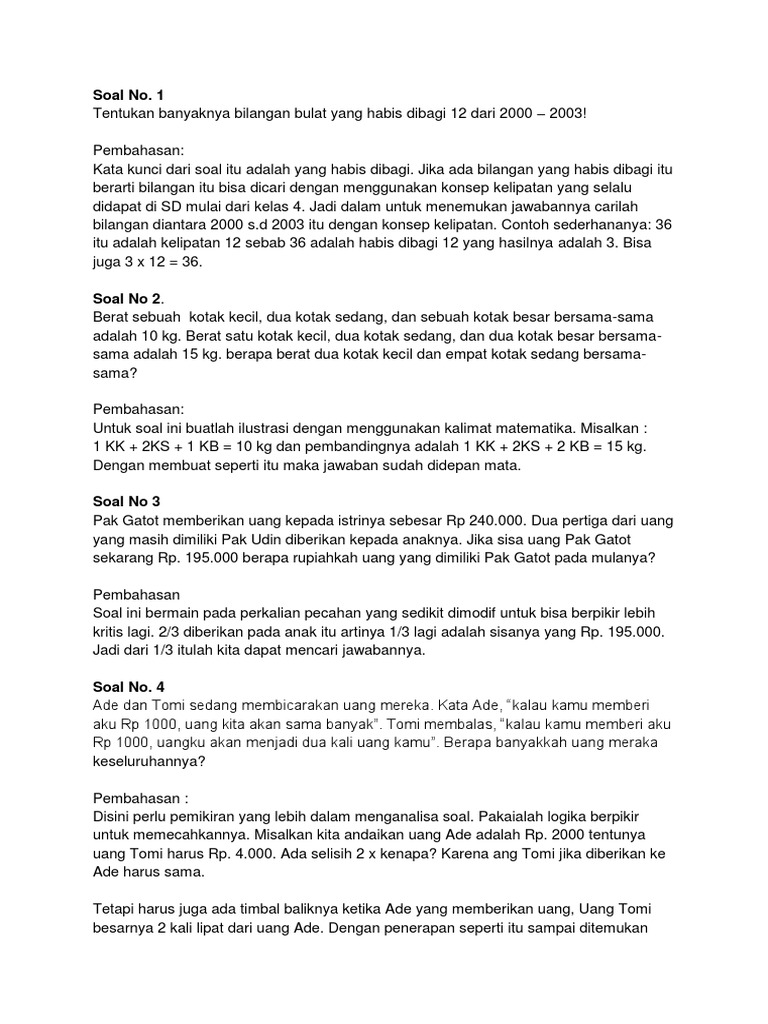 Soal Soal Problem Solving Dan Pembahasannya
