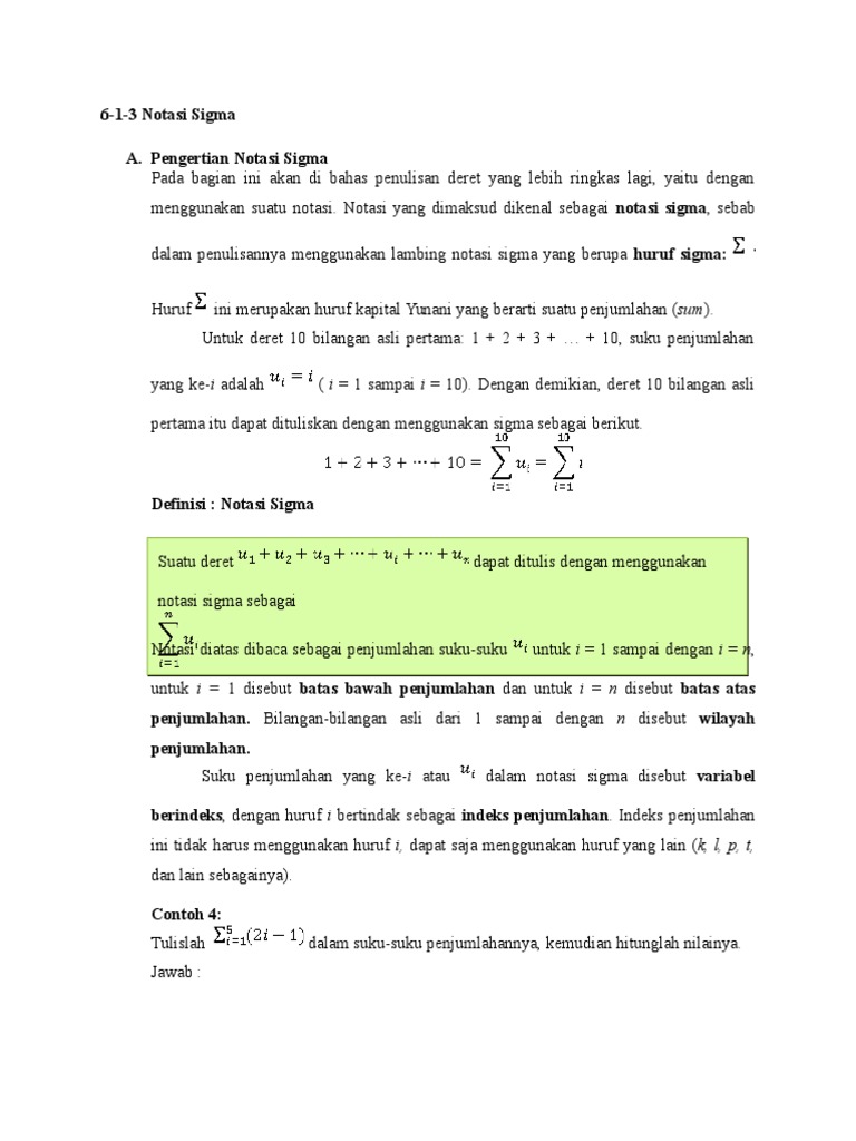 Bab 6 Notasi Sigma Barisan Dan Deret