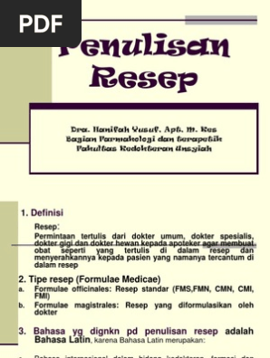 Penulisan Resep Dra Hanifah Yusuf Apt M Kes Bagian Farmakologi
