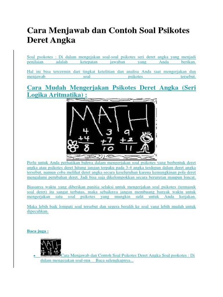 Contoh Contoh Soal Tes Deret Angka Psikotes Matematika Soal Sekolah