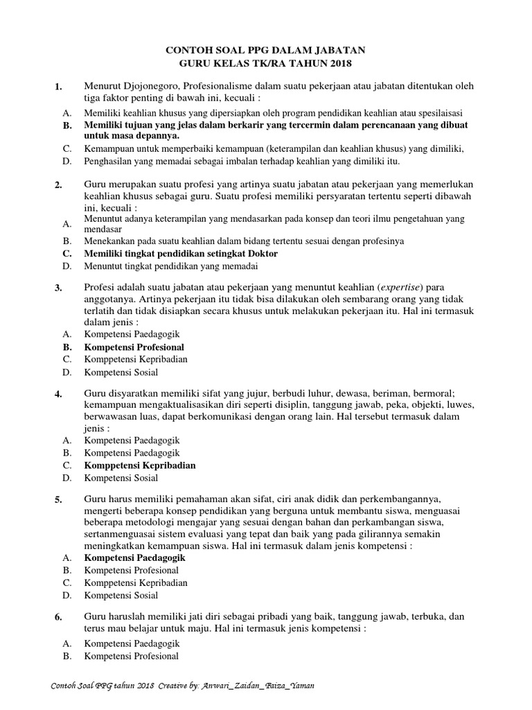 2 Contoh Soal Ppg Guru Tk Tahun 2018