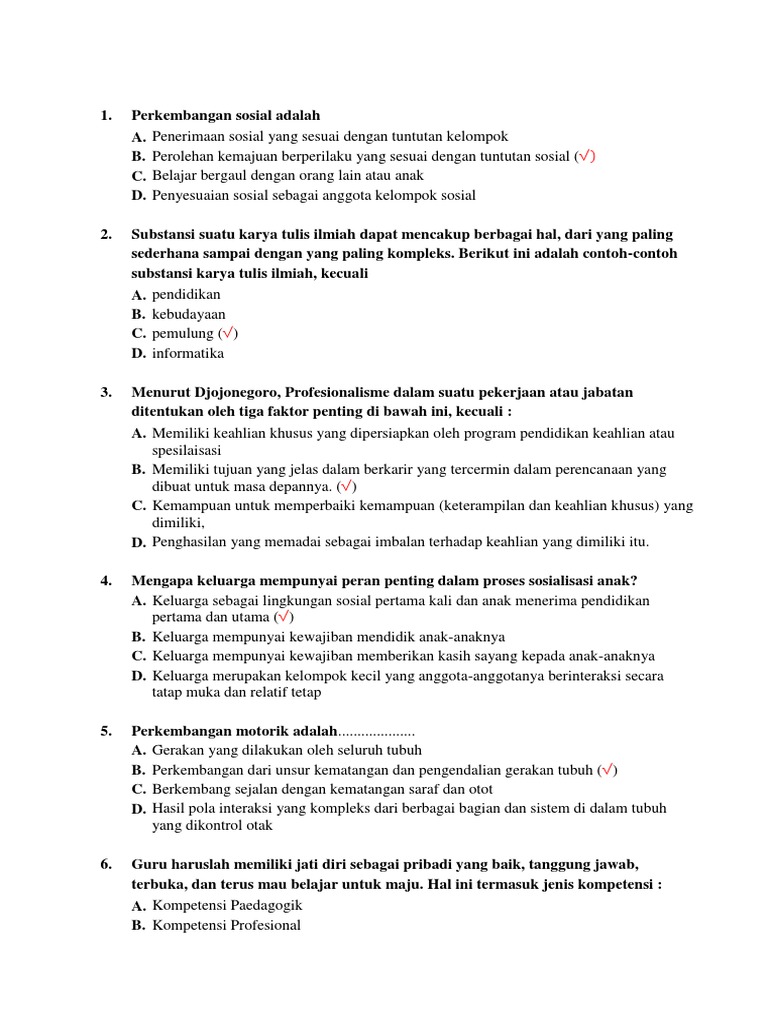 100 Soal Ukg Uji Kompetensi Guru Tk Paud Library Pendidikan