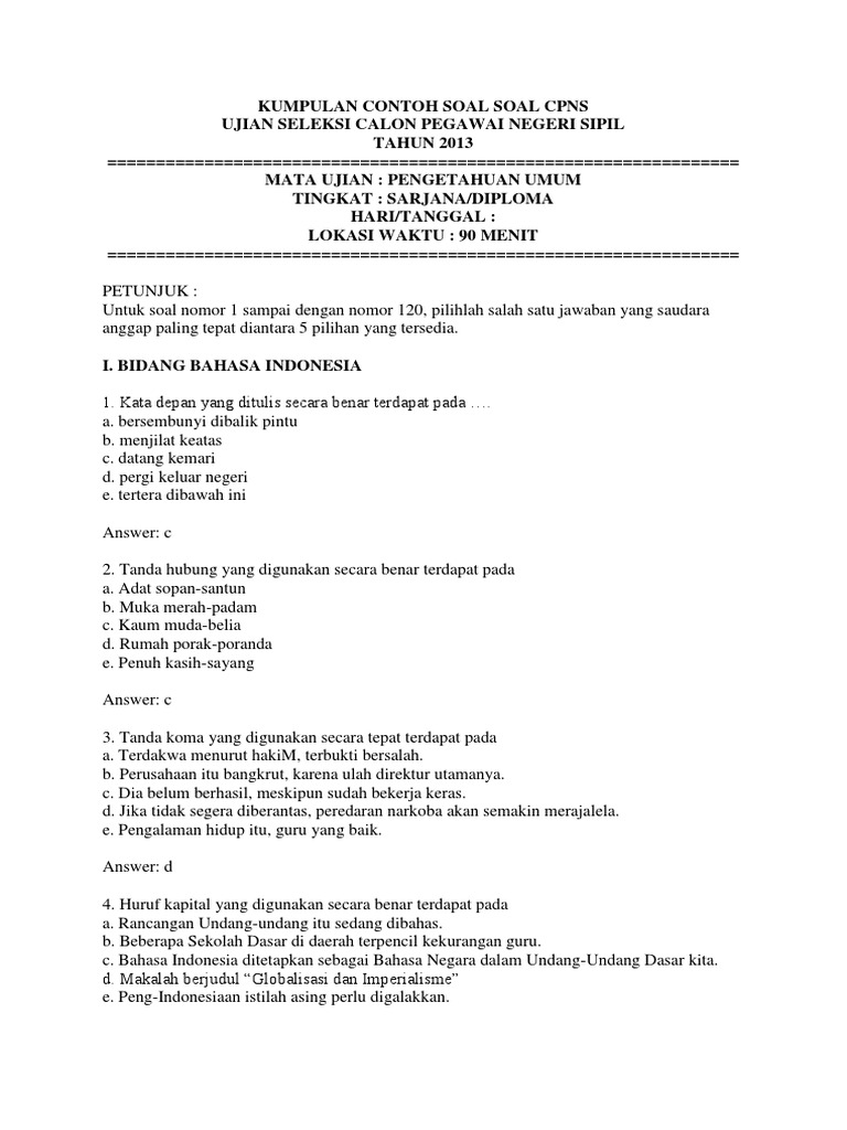 Contoh Soal Pengetahuan Umum Beserta Kunci Jawaban
