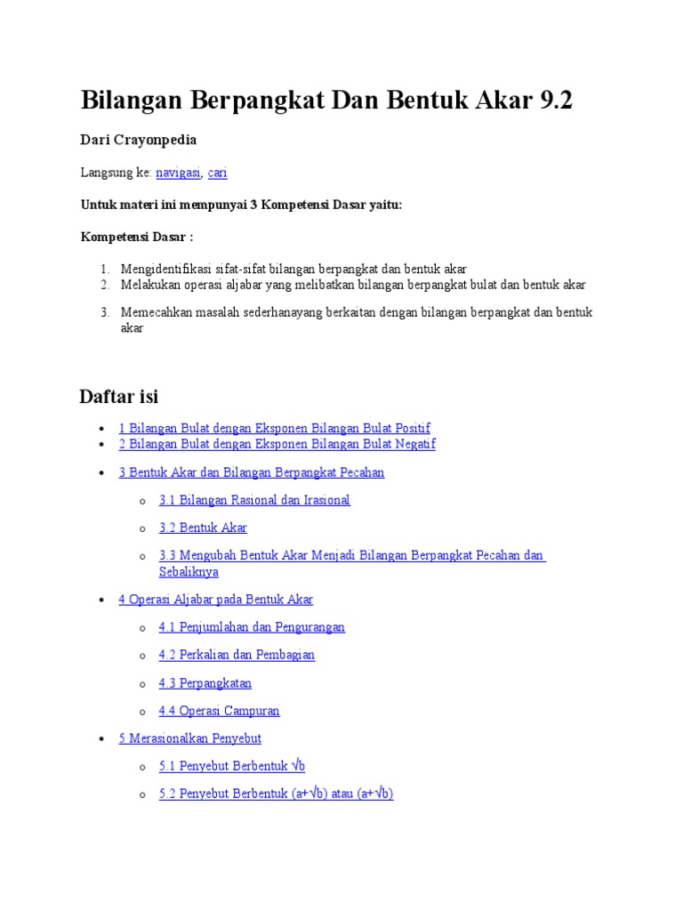 Doc Materi Bilangan Berpangkat Hans Hutabarat Academia Edu