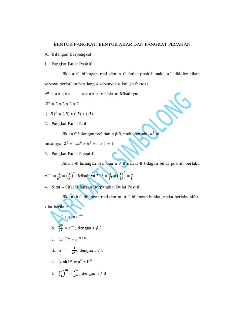 Materi Bentuk Pangkat Akar Dan Pangkat Pecahan