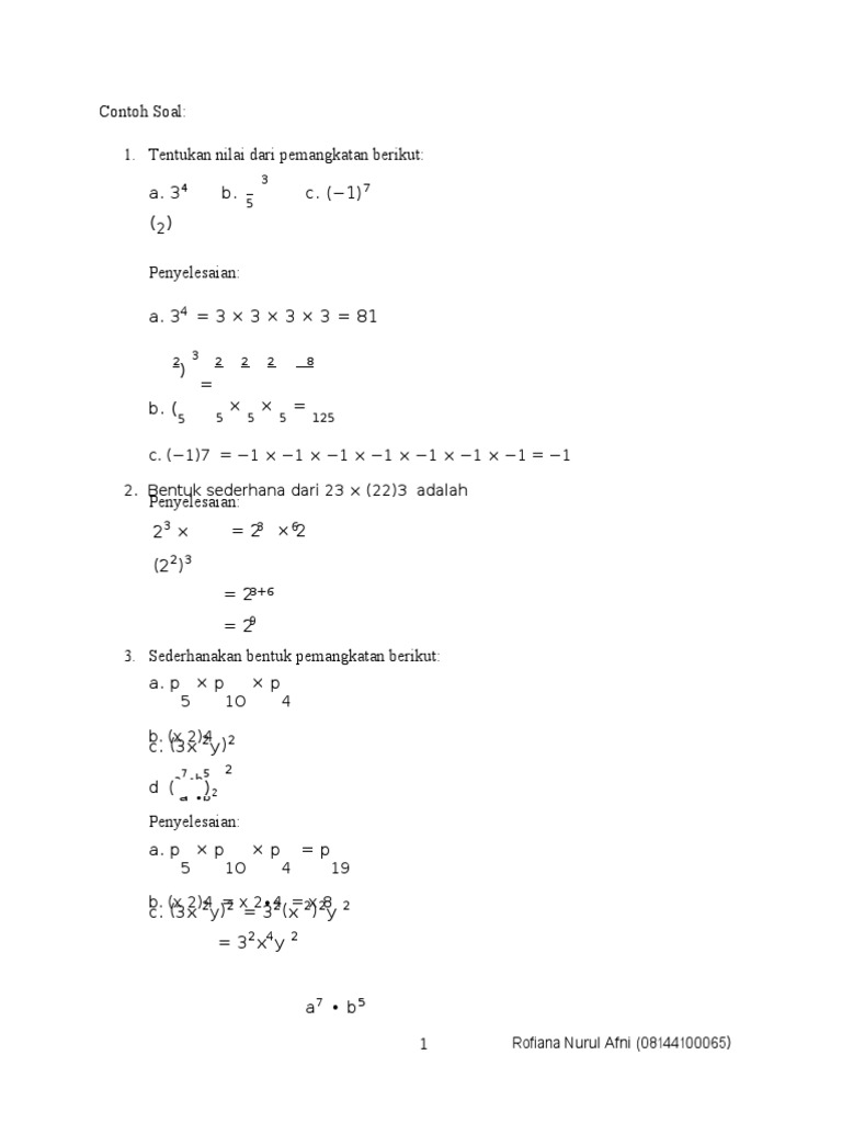Contoh Soal Bilangan Berpangkat Bulat Positif Negatif Dan Nol Buat