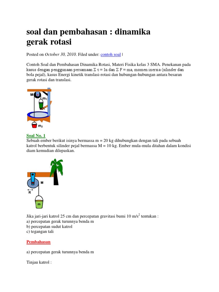 Soal Dan Pembahasan Dinamika Gerak Rotasi Doc Document