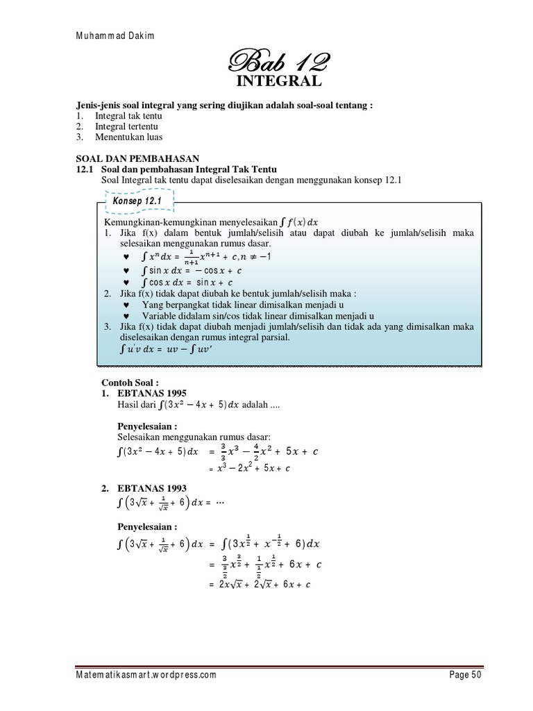 Contoh Contoh Soal Dan Pembahasan Integral Untuk Sma Doc Contoh