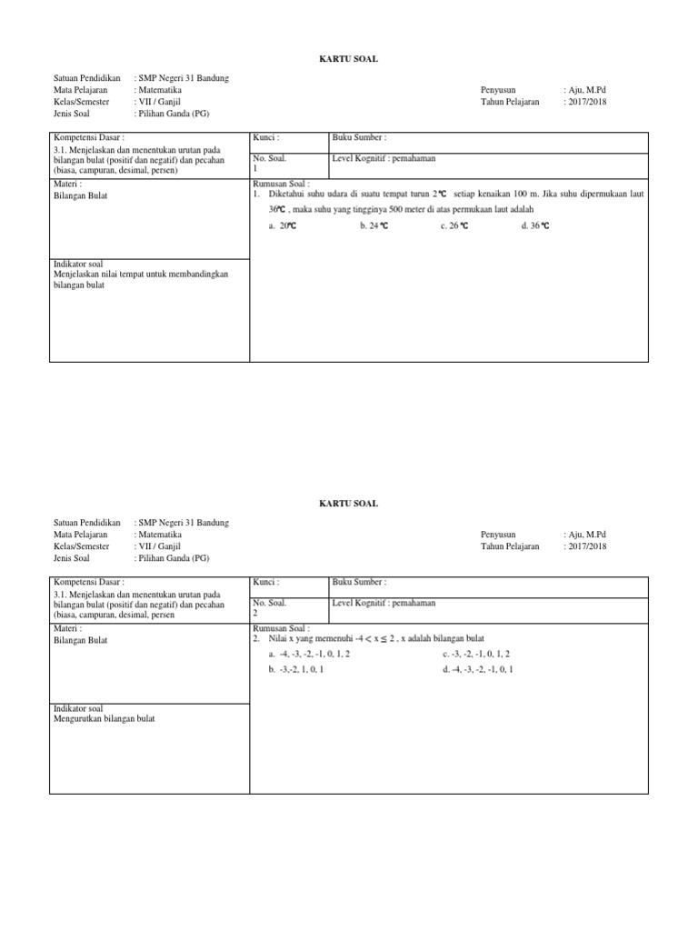 Lembar Penilaian Kognitif Kd 3 1 Smp Kelas Vii Kurikulum 2013